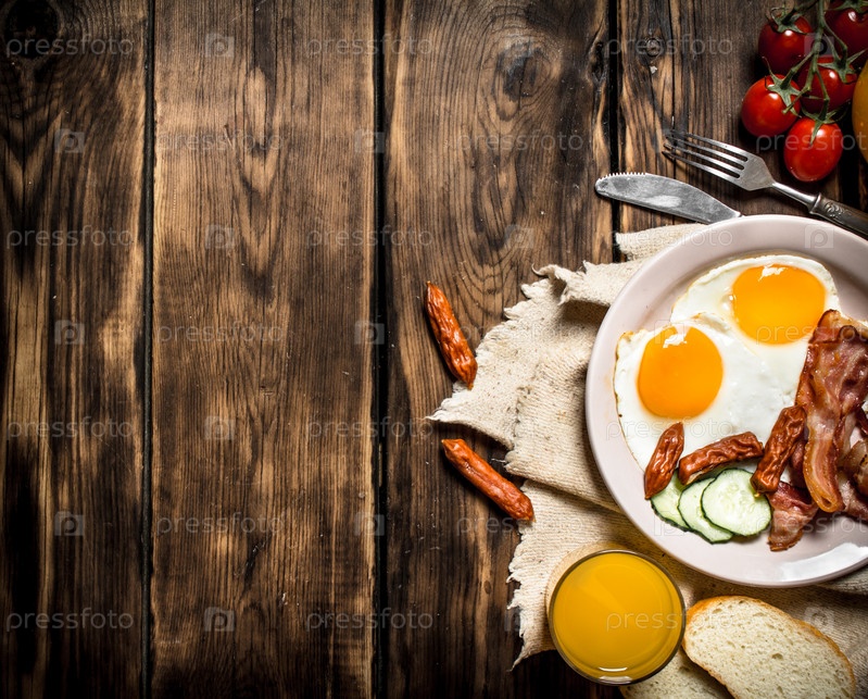 Жареный бекон с яйцами и апельсиновым соком