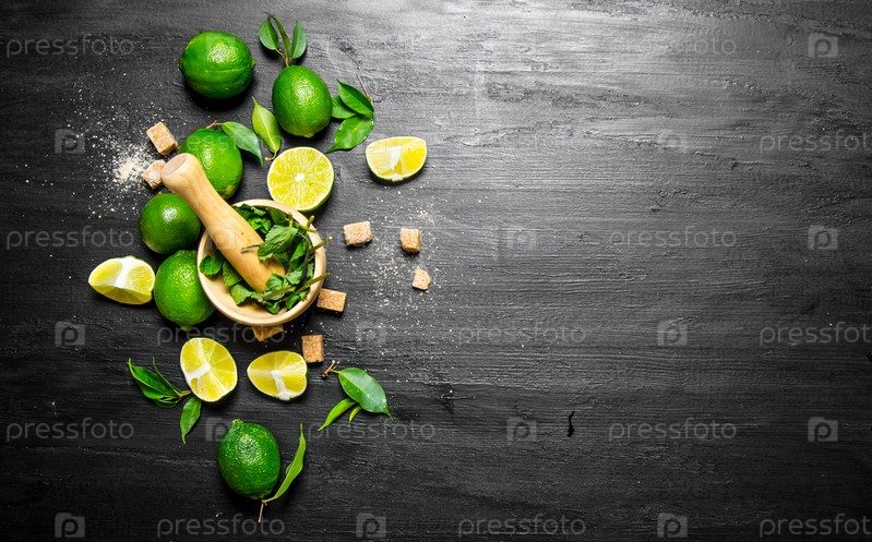 Фон с мятой, сахаром и ломтиками лайма