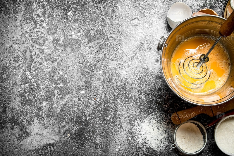 Взбитые свежие яйца в ведре на деревенском фоне
