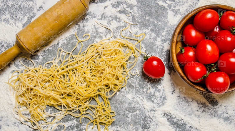 Лапша с помидорами и скалкой