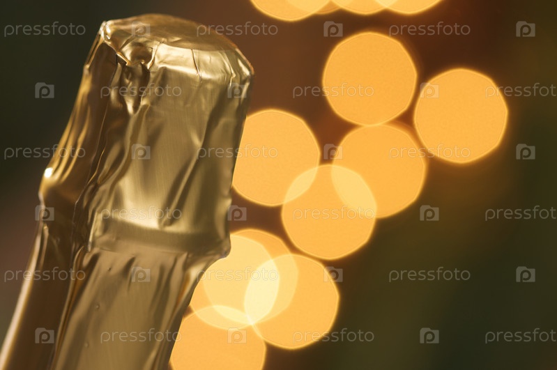 Фрагмент бутылки шампанского на фоне с боке