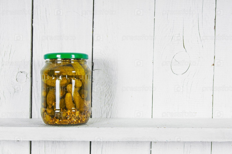 Консервированные огурцы в стеклянной банке