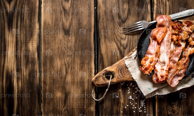 Жареный бекон в сковороде