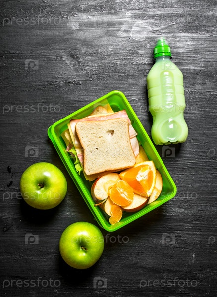 Утренний пикник. Бутерброды молочный коктейль и фрукты