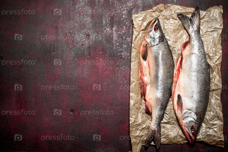 Свежий лосось на старой бумаге