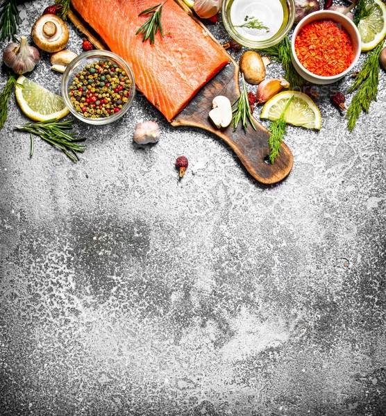 Свежее филе лосося с травами и специями