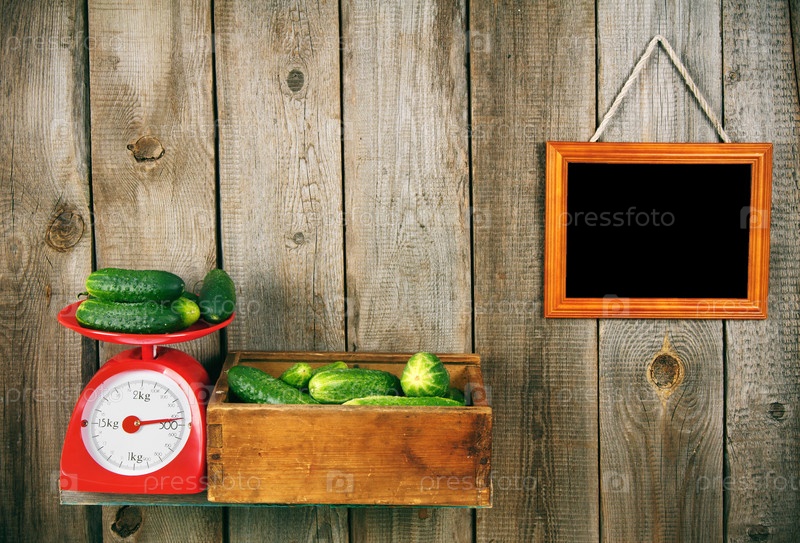 Огурцы на весах и в коробке