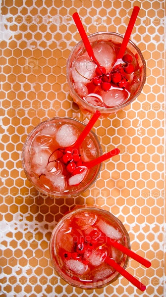 Красные коктейли со льдом и соломкой