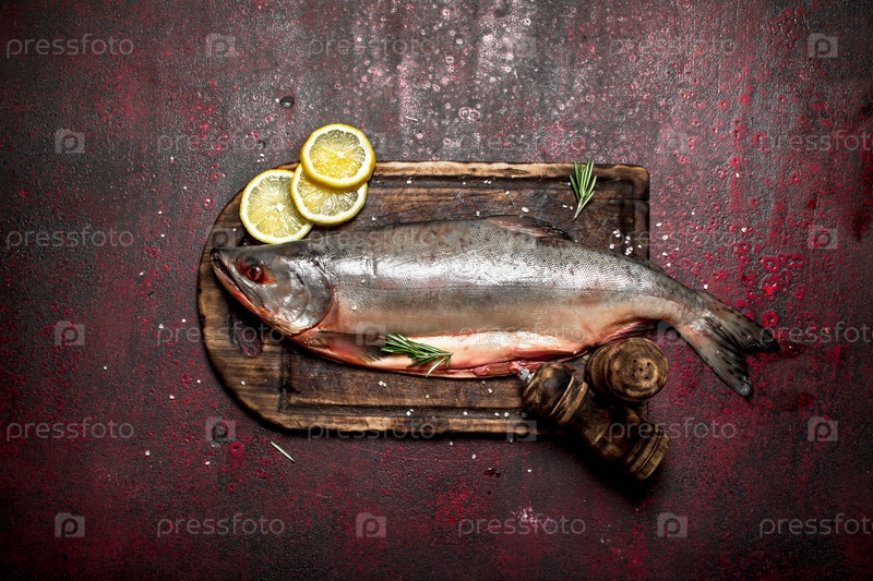 Рыба на разделочной доске с лимоном и специями