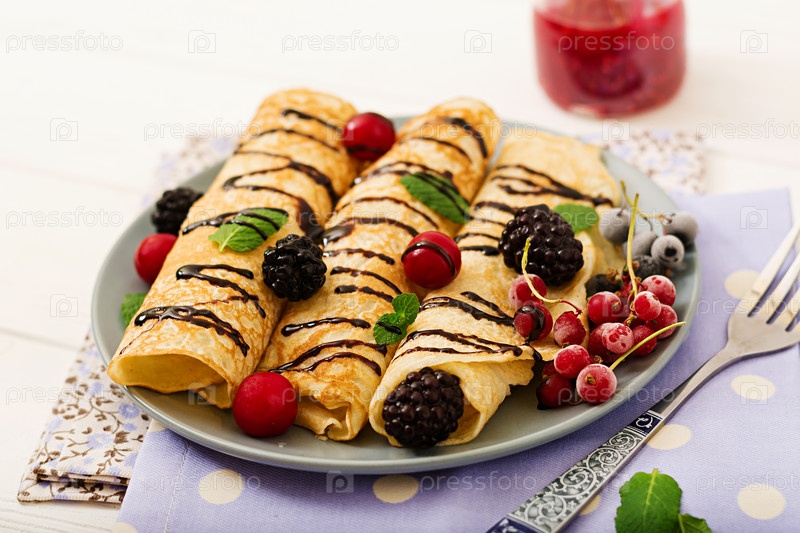Блинчики с шоколадом, вареньем и ягодами