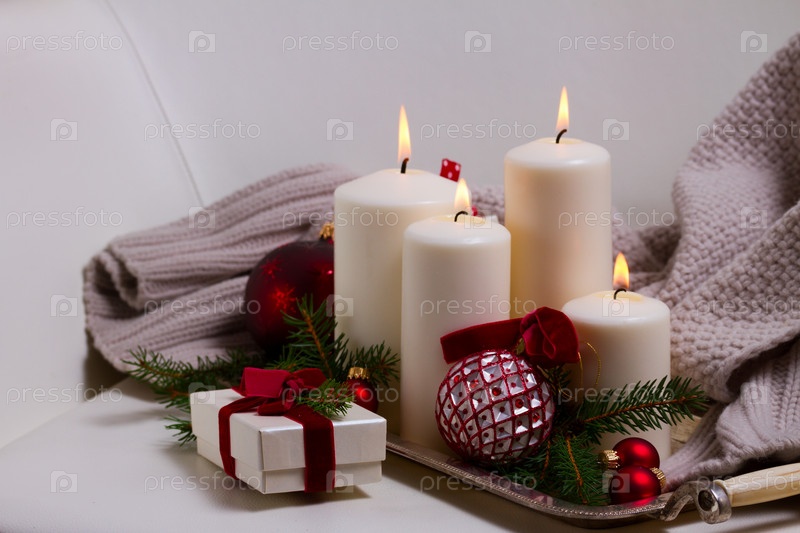 Рождественская композиция с горящими свечами