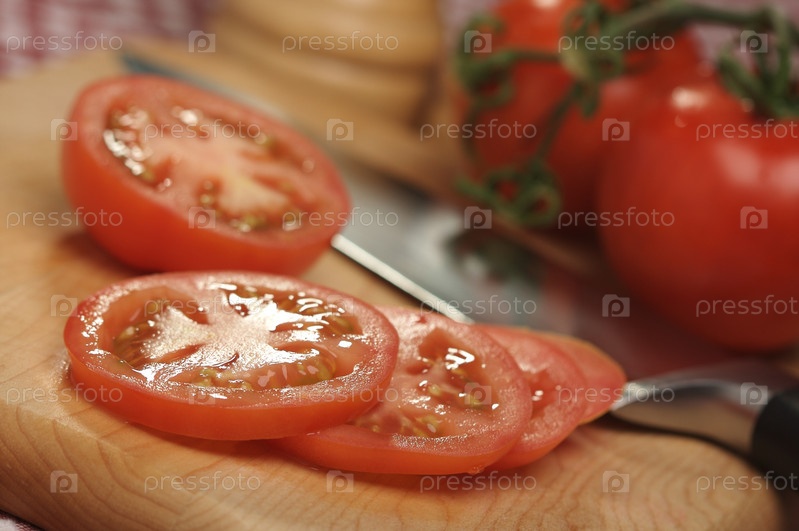 Нарезанные помидоры на разделочной доске