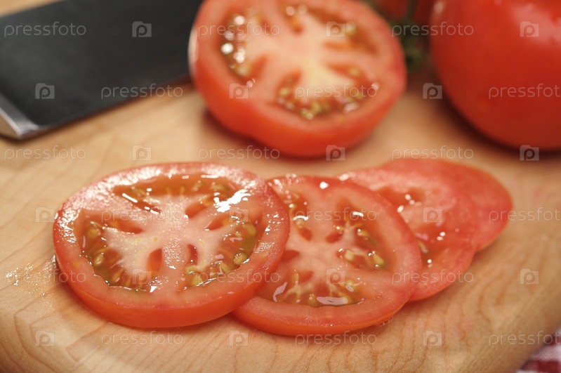 Нарезанные помидоры на разделочной доске
