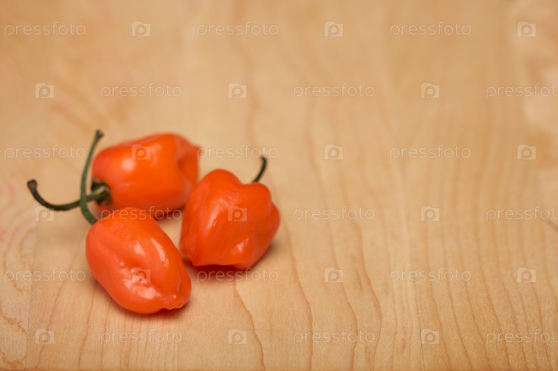 Оранжевый перец чили на деревянной разделочной доске