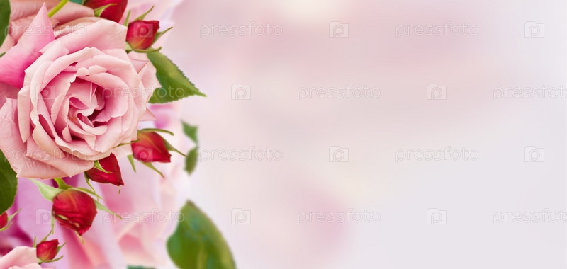 Розовые розы с бутонами