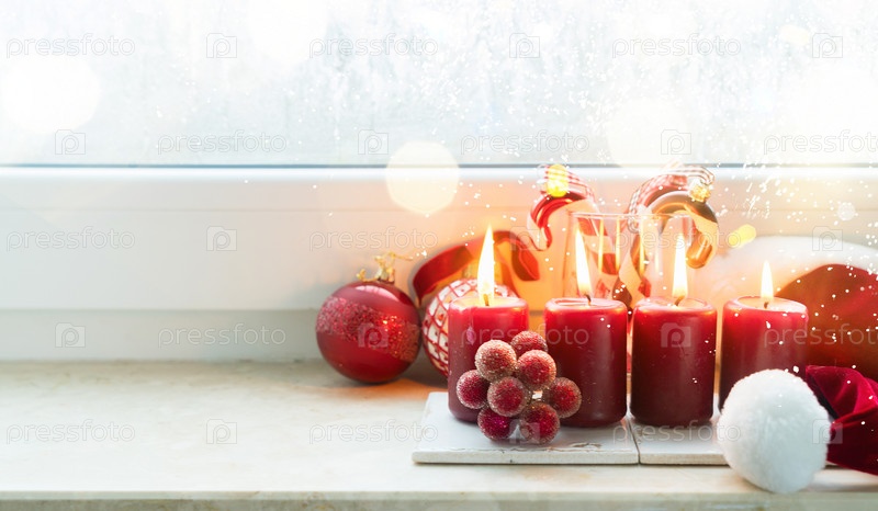 Рождественская композиция с горящими свечами