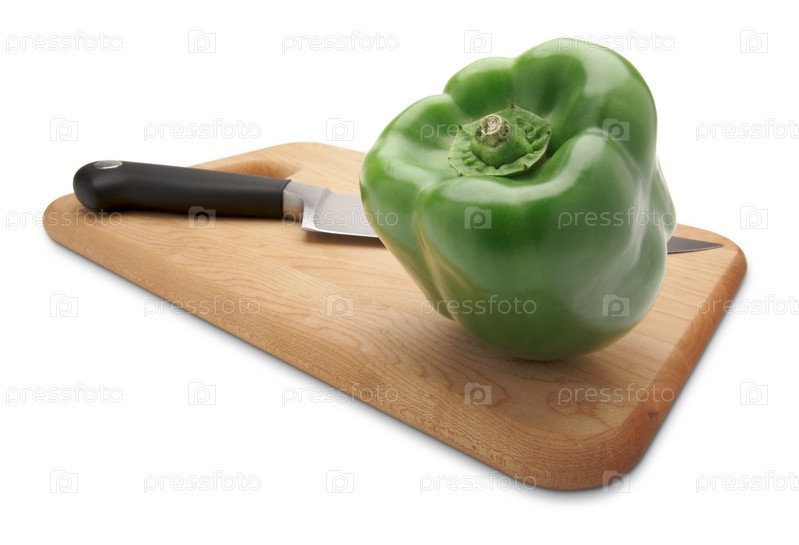 Зеленый перец и нож на доске