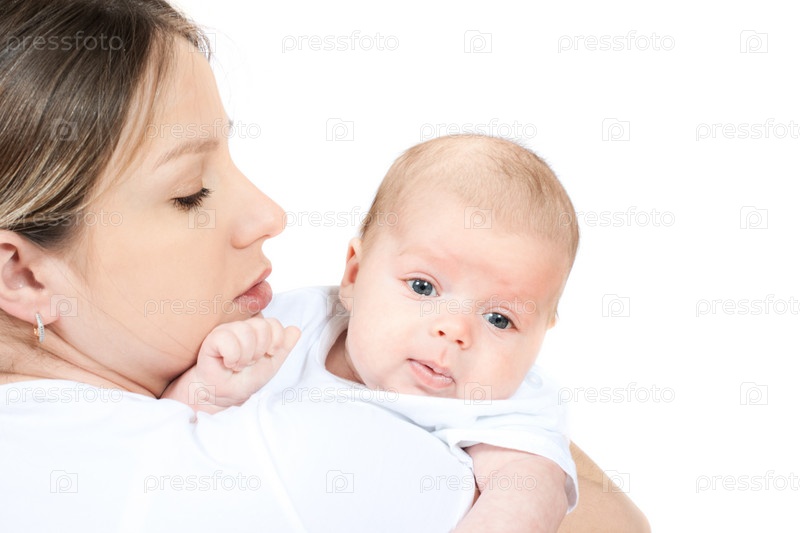 Мать с ребенком на белом фоне