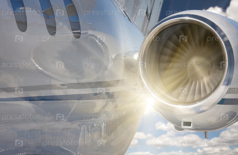 Частный самолет и солнечные лучи