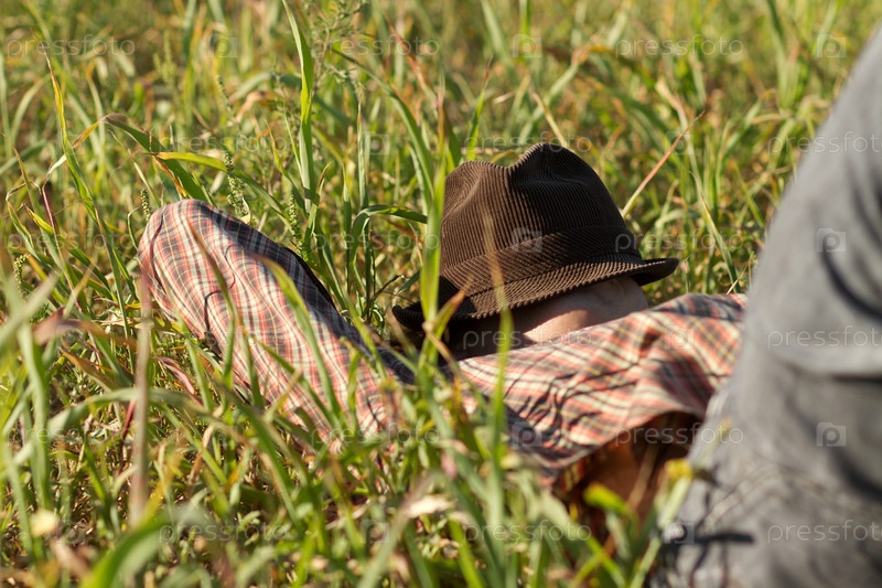 Человек спит со шляпой на лице