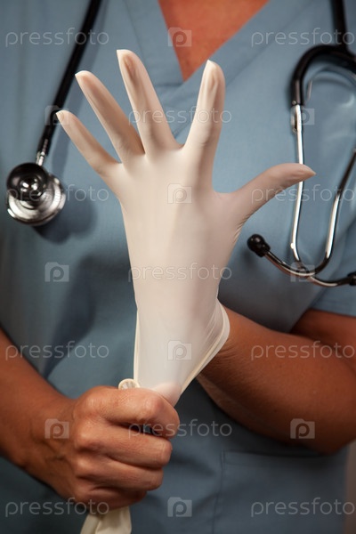 доктор надевает латексные перчатки
