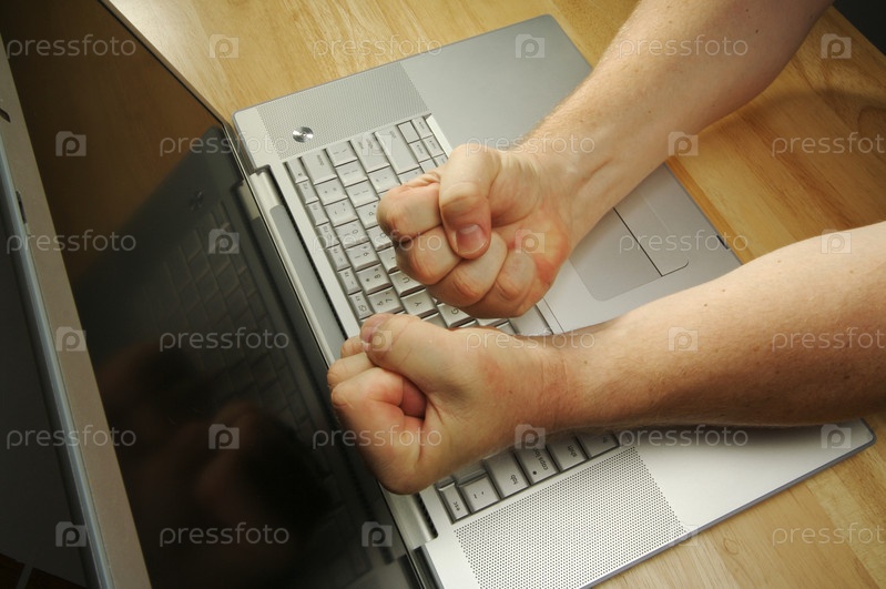 Человек злится на ноутбук
