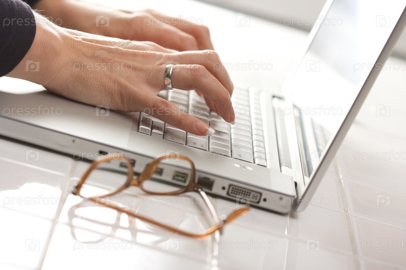 Девушка использует ноутбук