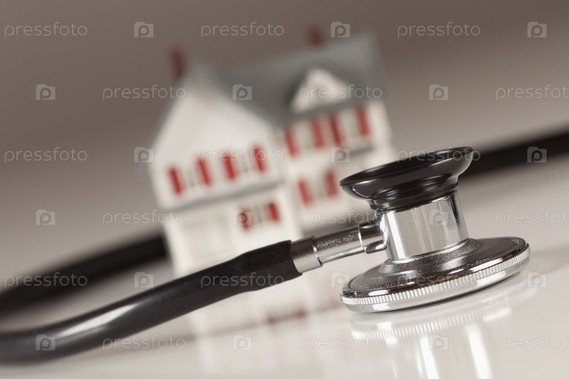 Стетоскоп и модель дома