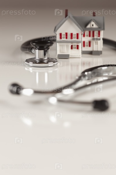 Стетоскоп и модель дома