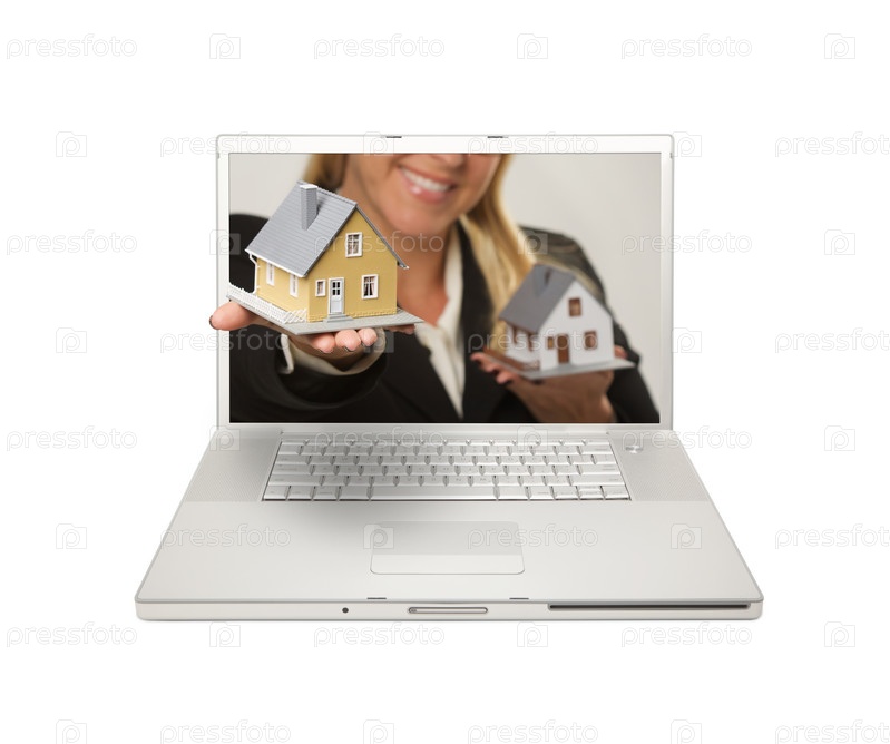 Женщина передает дом через экран ноутбука