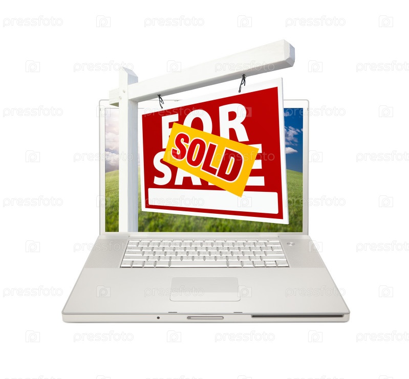 Знак "Продано" на ноутбуке, продажа недвижимости