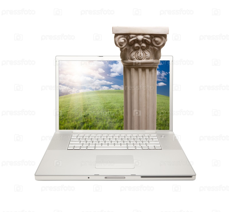 Ноутбук с изображением колонны на белом фоне