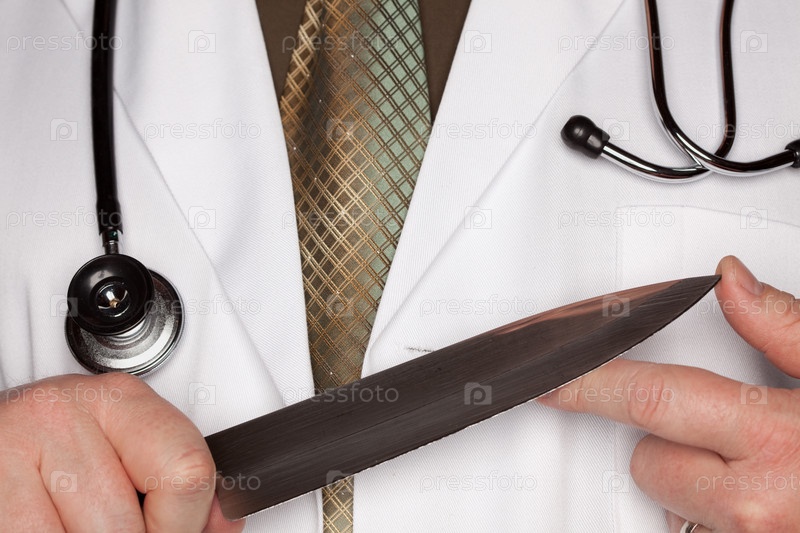 Доктор со стетоскопом и ножом