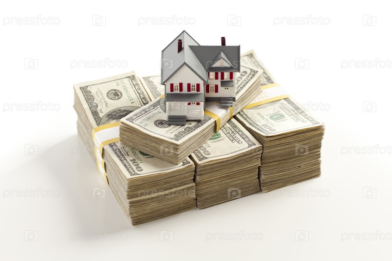 Маленький дом на стопке пятидолларовых купюр