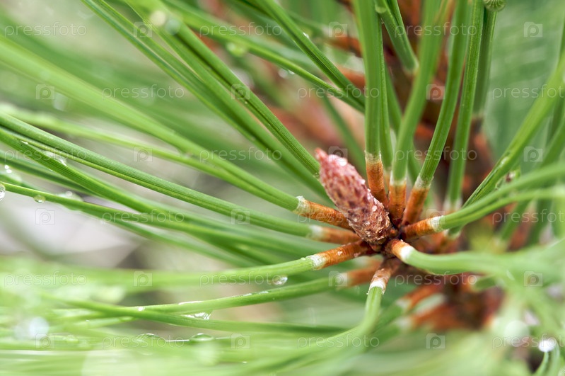 Капли воды на сосновых иголках