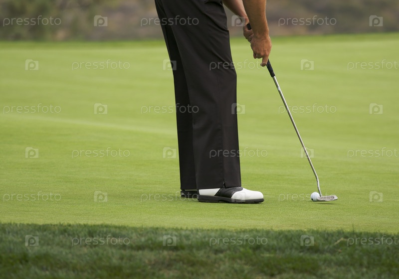 Гольфист на зеленой лужайке