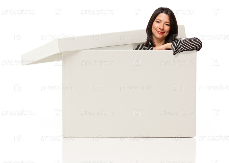 Женщина, стоя внутри пустой коробки