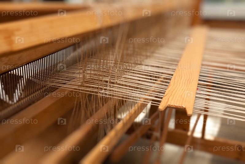 Фрагмент процесса ткачества на деревянном ткацком станке