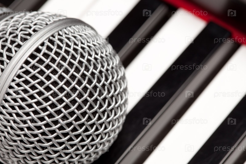 Микрофон, лежащий на электронной клавиатуре