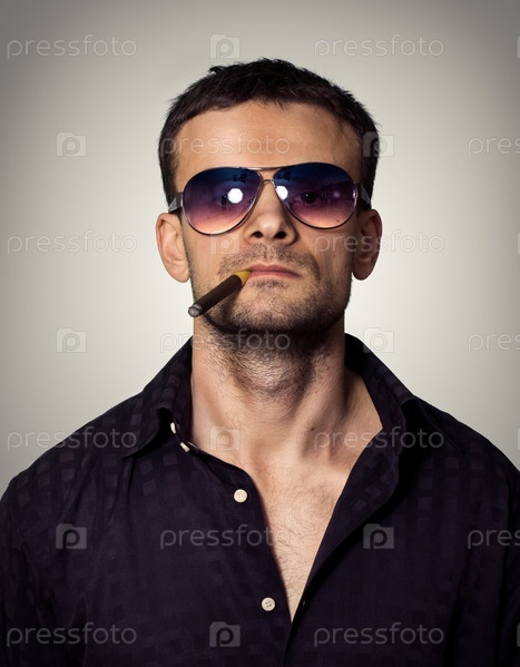 Мужчина в солнцезащитных очках с сигарой