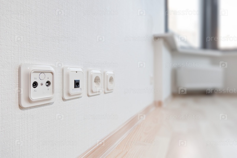 Розетки на стене комнаты в современной квартире