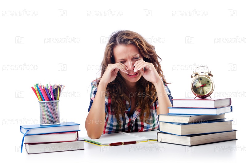 Расстроенная девушка-студентка готовиться к экзамену