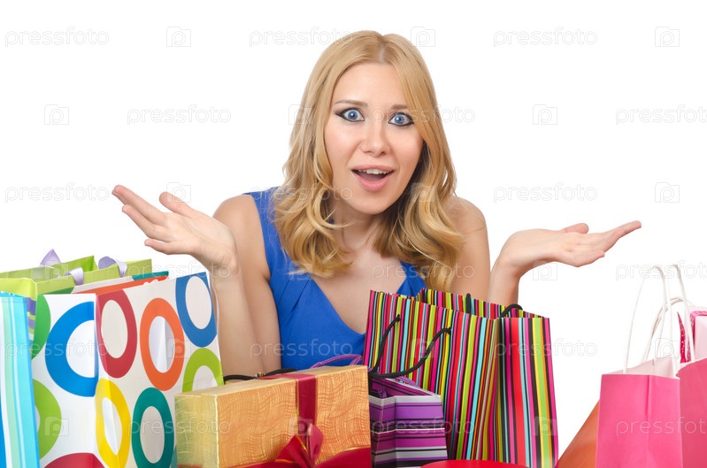 Счастливая девушка с покупками