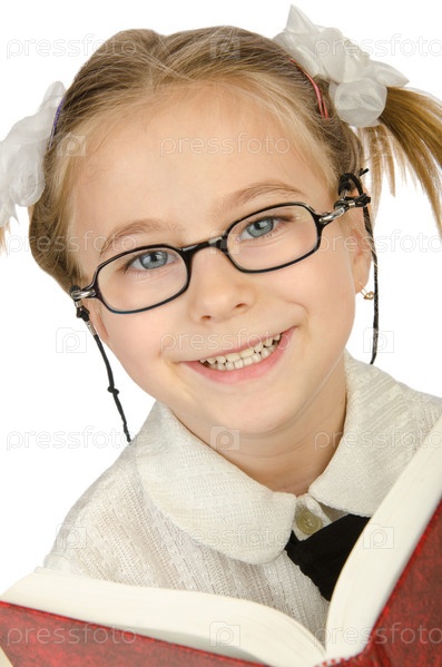 Маленькая девочка с книгами на белом фоне