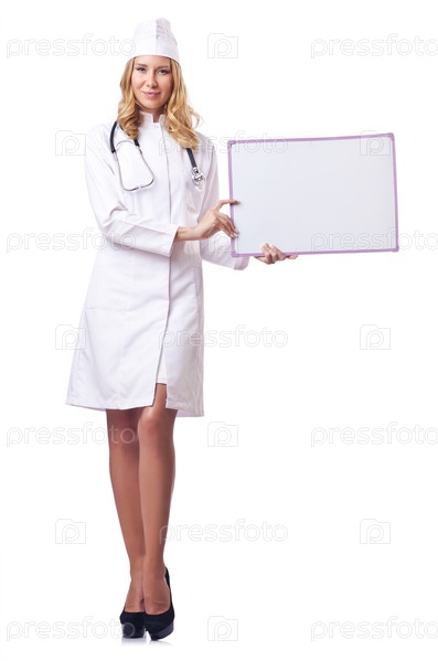 Женщина-врач с пустым баннером