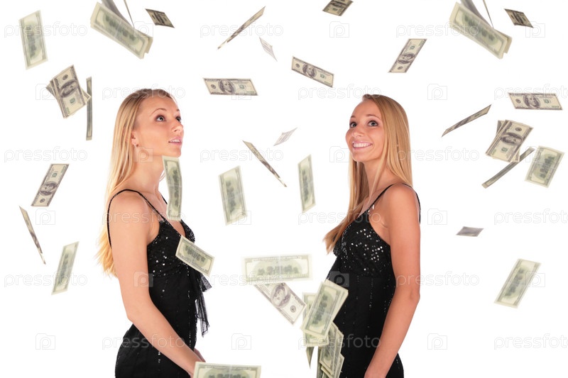 Девушки - близнецы с долларами