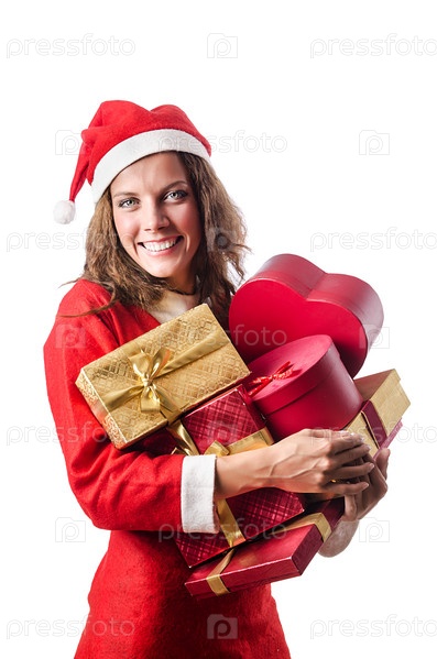 Молодая женщина с рождественскими покупками