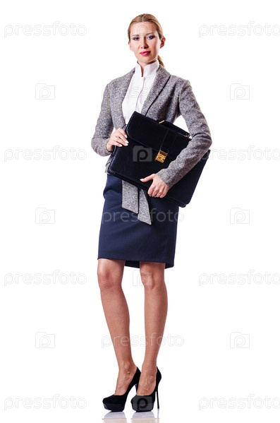 Деловая женщина с портфелем на белом фон