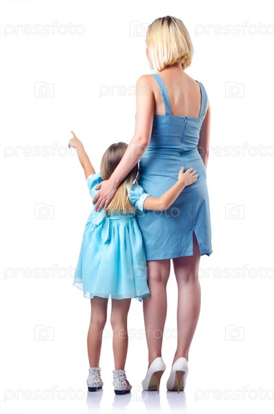 Счастливая мать с дочерью на белом фоне