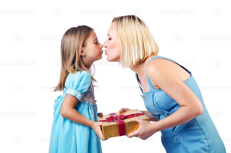 Счастливая мать дарит дочери подарок